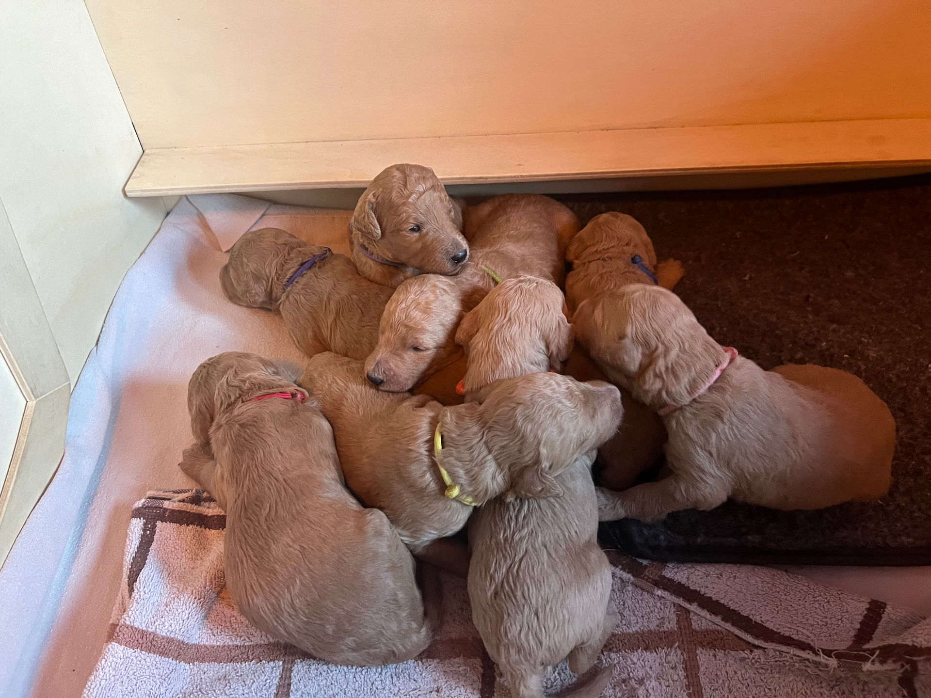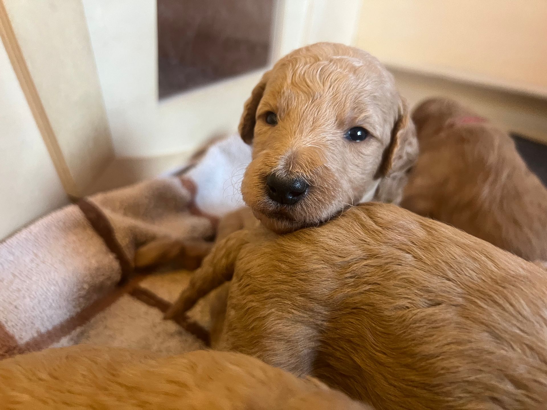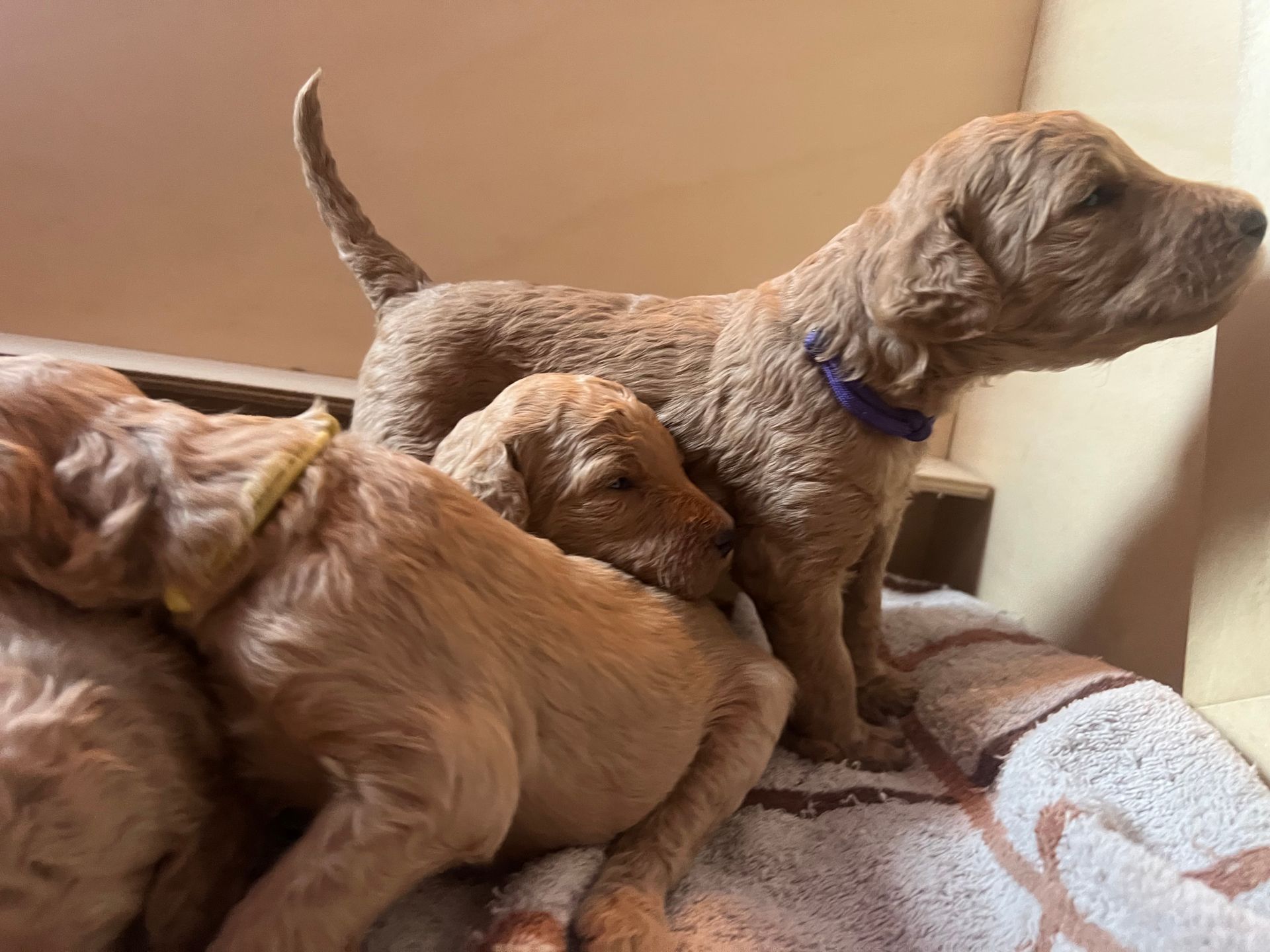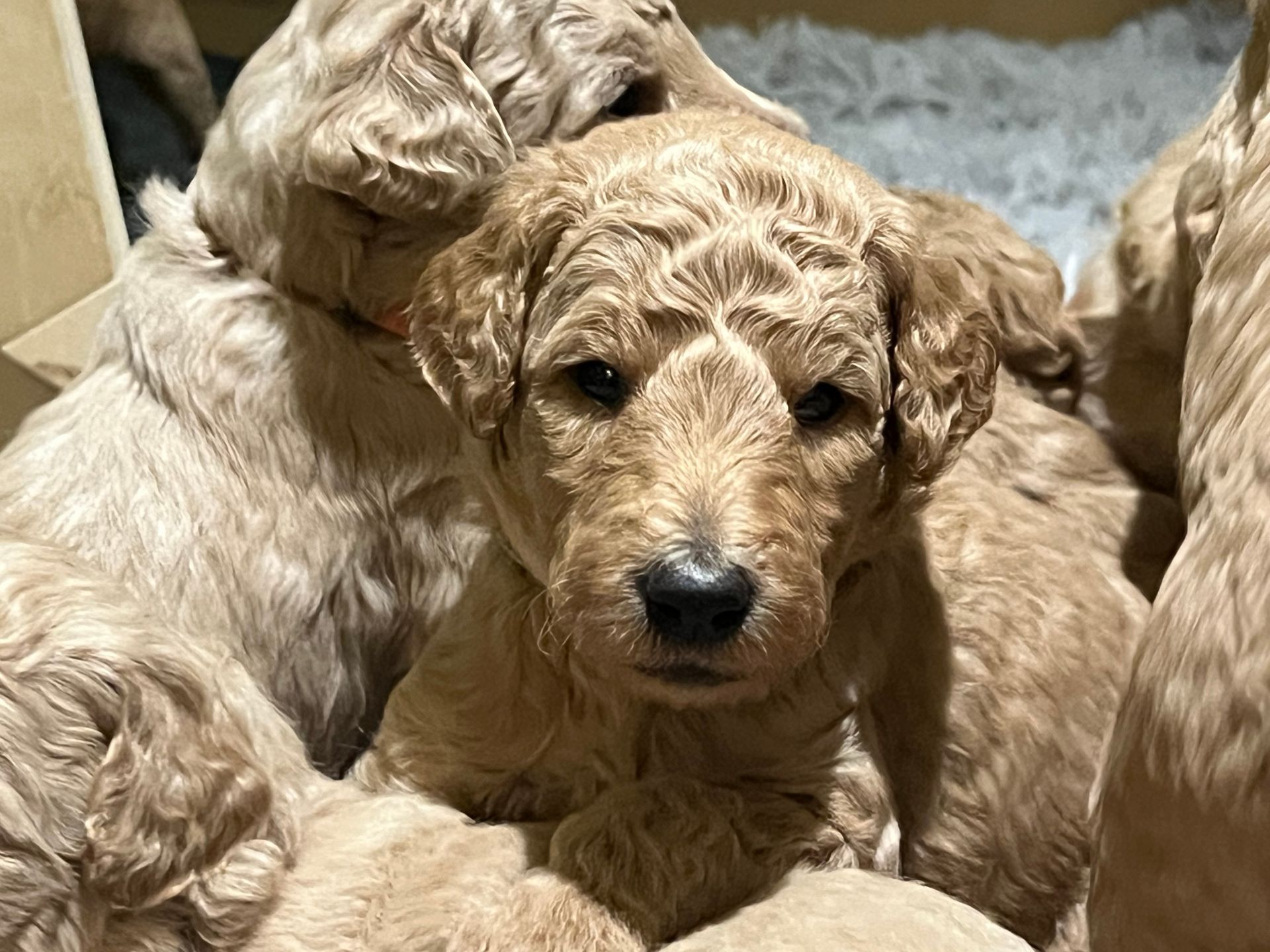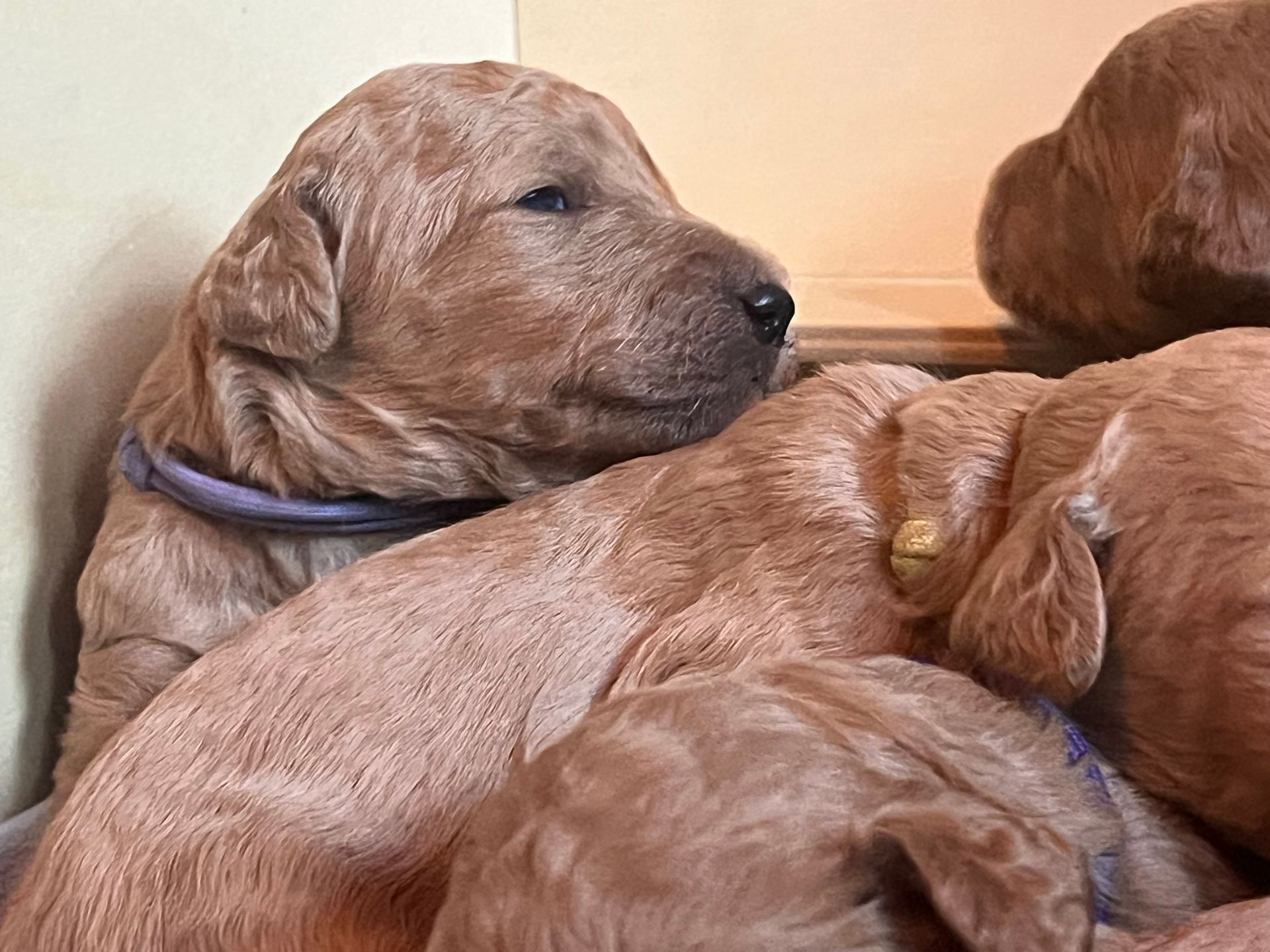 Am 17.12.2025 sind die lustige Lotta "Crazy vom Huftempel" und der liebevolle Frodo "Xanthos vom Chateau de Fontainebleau" stolze Eltern von putzmunteren, zuckersüßen, reinrassigen Königspudel Welpen geworden. Die kleinen Lockenköpfe haben verschiedene apricot Farbtöne.